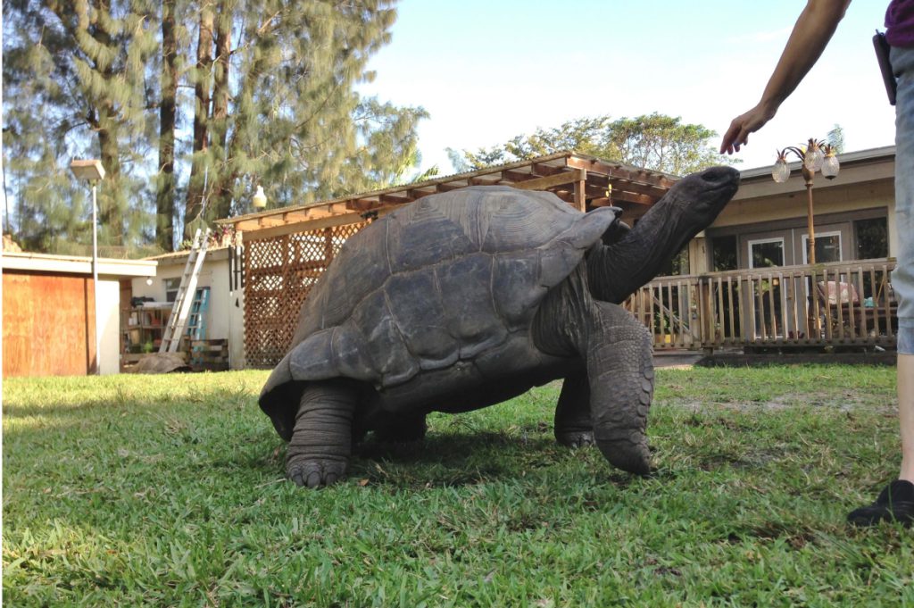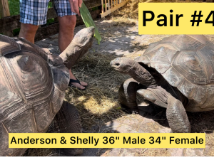 This 33 inch 23 year old Male Aldabra and 29 inch Female Aldabra Tortoise super friendly follows you around the yard like a dog